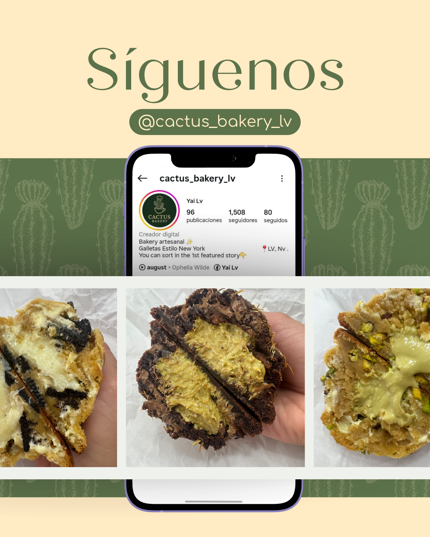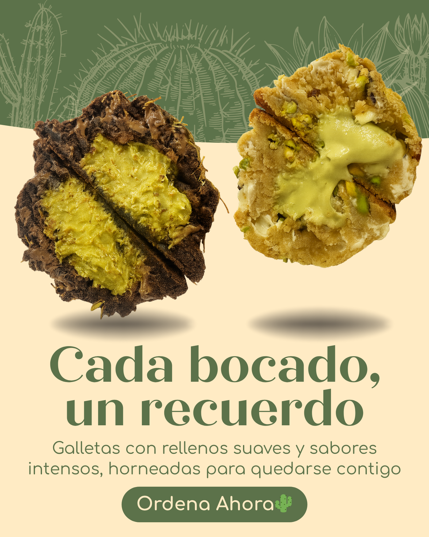 En Cactus Bakery , las galletas son más que un capricho: son pequeños momentos de alegría. Cada receta se prepara con cariño, diseñada para sorprenderte desde el primer bocado hasta el último. Ya sea que las compartas o las disfrutes solo, cada galleta guarda una historia.